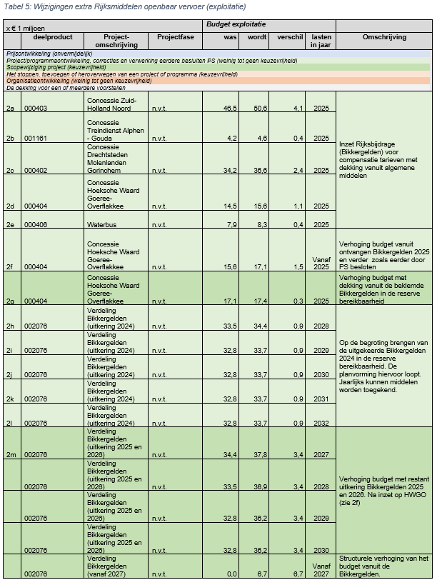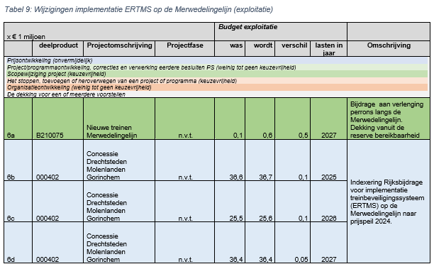 Tot slot is de Rijksbijdrage (SPUK) voor implementatie treinbeveiligingssysteem (ERTMS) op de Merwedelingelijn door het Rijk geïndexeerd naar prijspeil 2024. Dit wordt verwerkt in de Voorjaarsnota zodat dit kan worden uitgekeerd naar de vervoerder. Bij de Najaarsnota zal een nadere verhoging naar prijspeil 2025 plaatsvinden omdat momenteel de index voor 2025 nog niet bekend is.