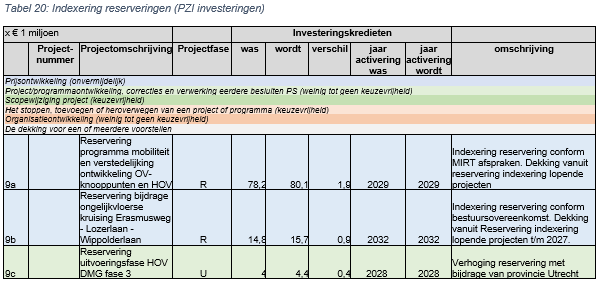 Onderdeel van de bestuurlijke afspraken is een jaarlijkse indexering van de gereserveerde middelen. In deze Voorjaarsnota wordt de reservering geïndexeerd naar prijspeil 1 jan 2025. De dekking hiervoor komt vanuit de reservering in het PZI voor indexering lopende projecten.