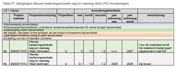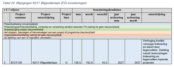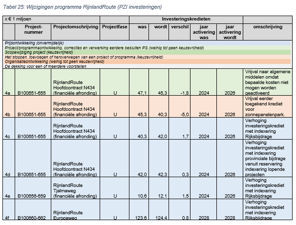 Ook dit jaar zijn er diverse projectontwikkelingen die worden verwerkt in het PZI, deze zijn voor de provincie grotendeels budgetneutraal. Er vindt maar één scopewijziging plaats. In het verleden zijn investeringsmiddelen toegekend voor de realisatie van een zonnepanelenpark. Na onderzoek is gebleken dat dit park echter technisch niet haalbaar is. Dit onderdeel wordt uit de scope van het project gehaald. De bijbehorende middelen zijn verder niet meer nodig binnen het project. Dat betekent dat € 5 miljoen vrijvalt naar de algemene middelen. Hiermee nemen de structurele kapitaallasten af.
